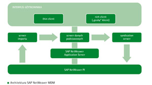 Natomiast komponent monitoringu technicznego serwera MDM korzysta z CCMS i ABAP APIs i jest wspierany przez SAP NetWeaver Application Server. Trzy typy API’s w połączeniu z Web Services dostarczają wydajnego dostępu dla deweloperów.