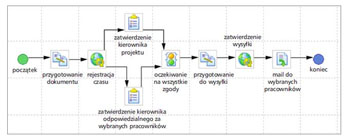 | Rys.1 Przykład opisania narzędziem graficznym prostego procesu zatwierdzania dokumentu i powiadamiania o tym odpowiednich osób |