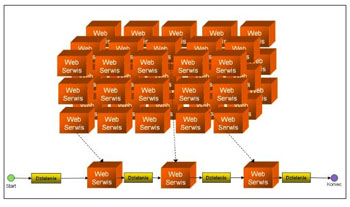 | Rys.4 Wiele wywołań „Web Serwis” (pojedynczych reakcji systemu na określone wydarzenie) działa niezależnie. |