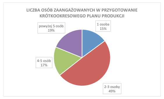 Według opinii 38% przedstawicieli firm uczestniczących w badaniach, w proces tworzenia krótkookresowego planu produkcji jest zaangażowanych 4-5 lub więcej osób. Niemal połowa respondentów przyznała, że do tego zadania zatrudnia 2-3 osoby.