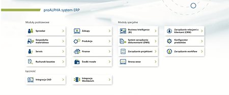 proALPHA to kompletne rozwiązanie klasy ERP ukierunkowane na potrzeby przedsiębiorstw z sektora produkcyjnego. Z powodzeniem wspiera procesy produkcji jednostkowej jak i wielkoseryjnej. Jest zintegrowanym oprogramowaniem opartym na strukturze modułowej, dzięki czemu system w łatwy sposób dopasowuje się do organizacji różnych wielkości.